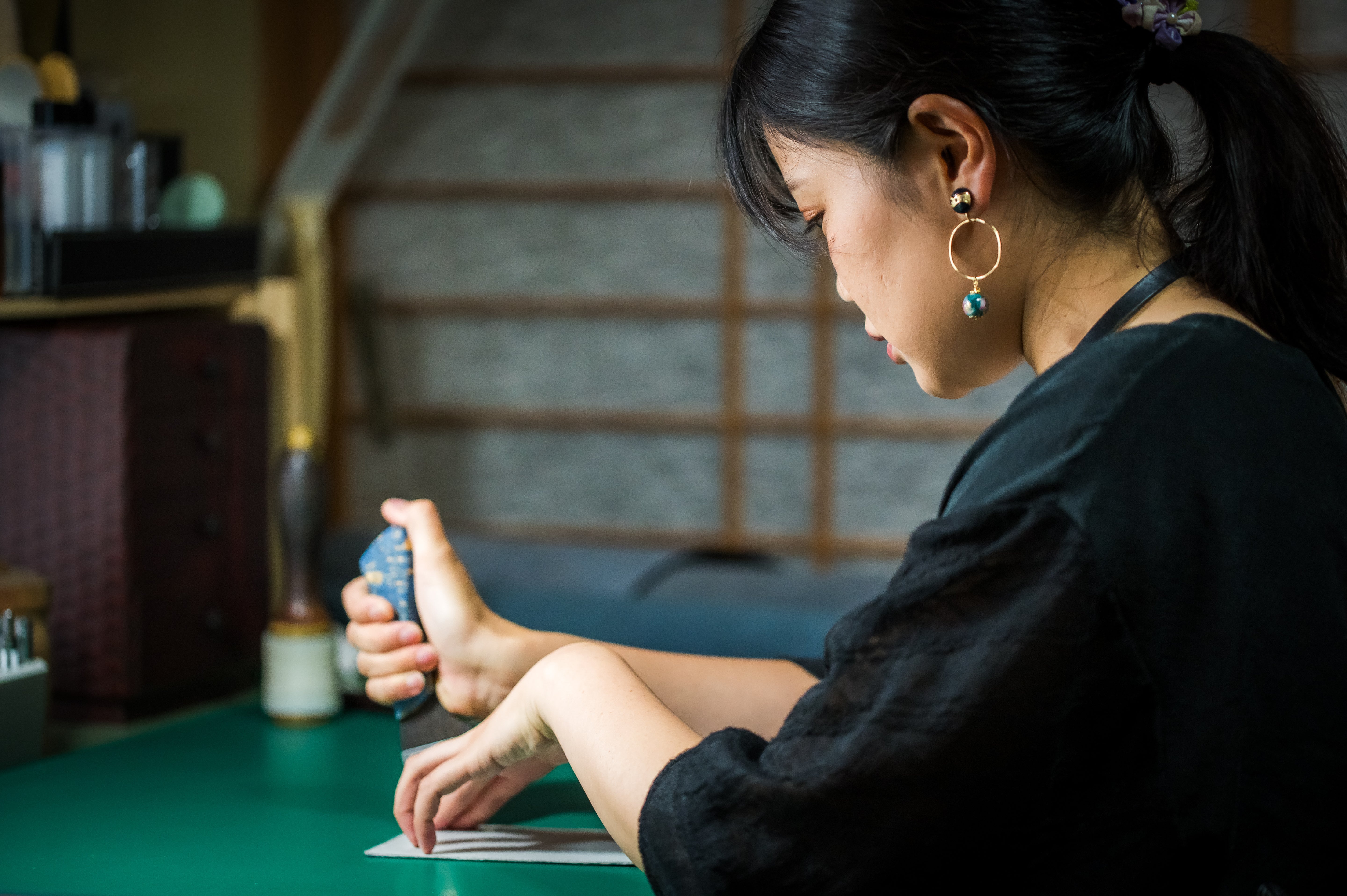 上質な姫路レザーに、京都の伝統技術を重ねています。